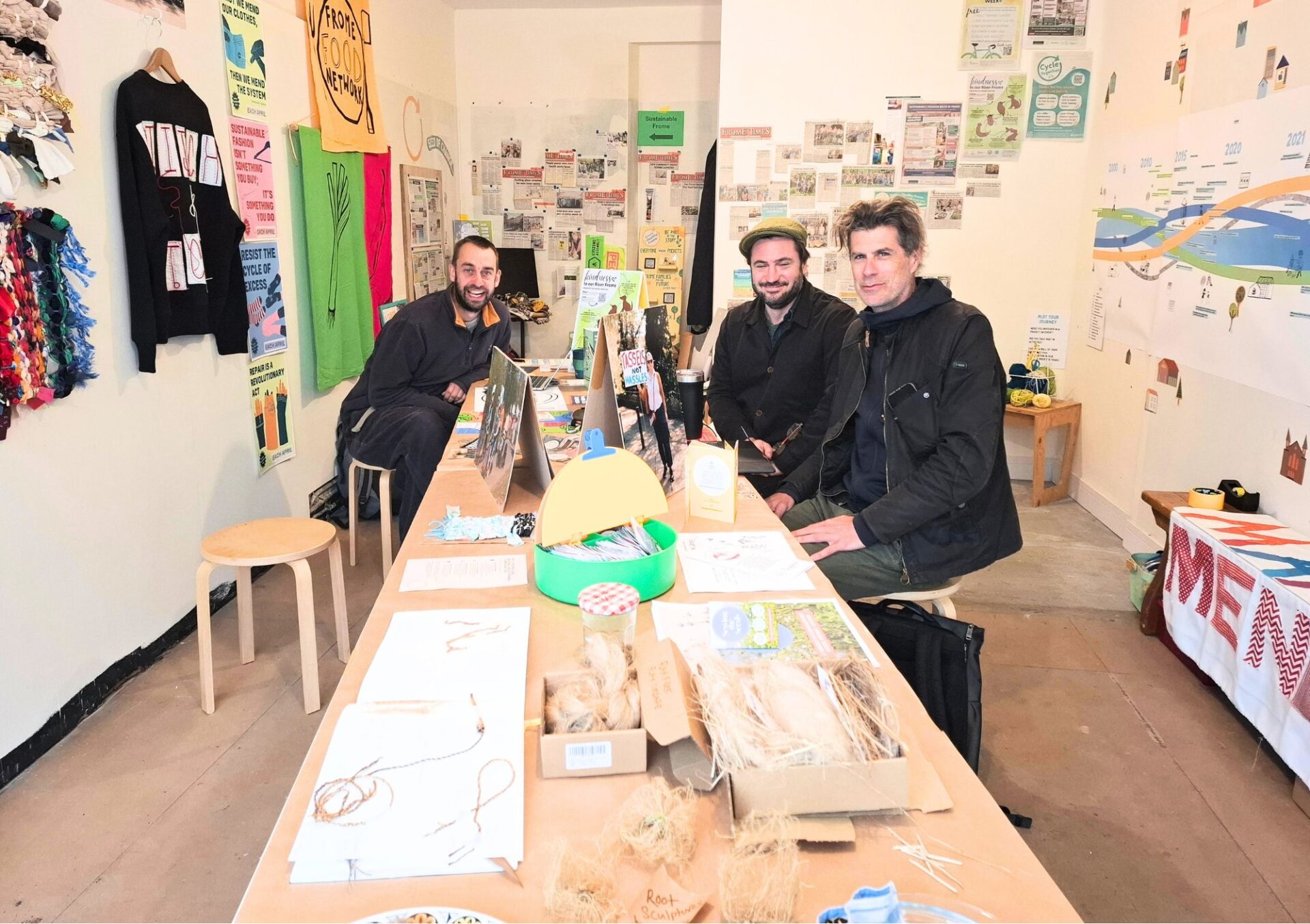 Visitors can view information about the groups and projects addressing Frome’s wellbeing, ecology and economy, meet members of Frome Town Council’s Resilience team and explore photographs, artefacts & archives from the Green and Healthy Frome project. There are free drop-in workshops with Frome Families for Future (Friday 10am to 1pm) and Everyone Needs Pockets (Saturday 10am to 3pm). Also on display is Plastic Bones – a colossal artwork made from scrap plastic materials by Frome Youth Climate Action Group and artist Julie Starks.
